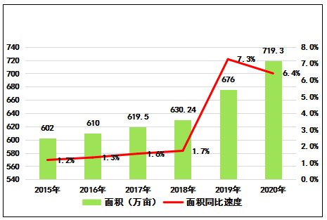 圖1 2015-2020年云南省茶園總面積趨勢圖