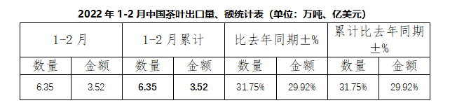 本文標(biāo)題:再迎開門紅——2022年1-2月中國(guó)茶葉出口情況簡(jiǎn)報(bào) - 茶葉新聞_中國(guó)茶葉新聞_國(guó)際茶葉新聞